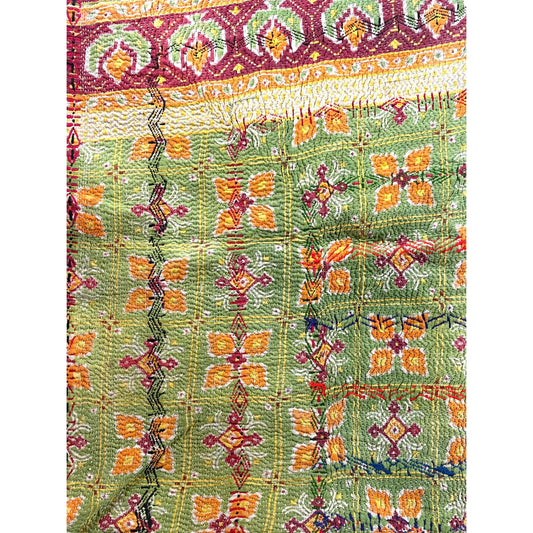 Block Print Cotton Quilted Tote Bag Green With Tiger Pattern