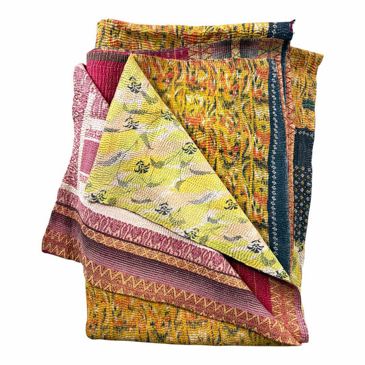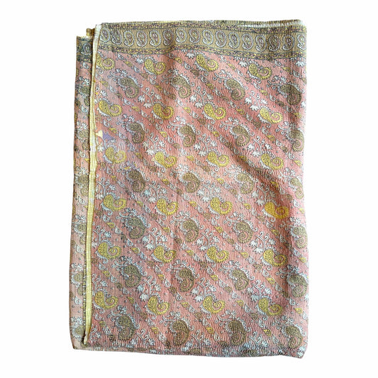 Block Print Cotton Quilted Tote Bag Orange Floral