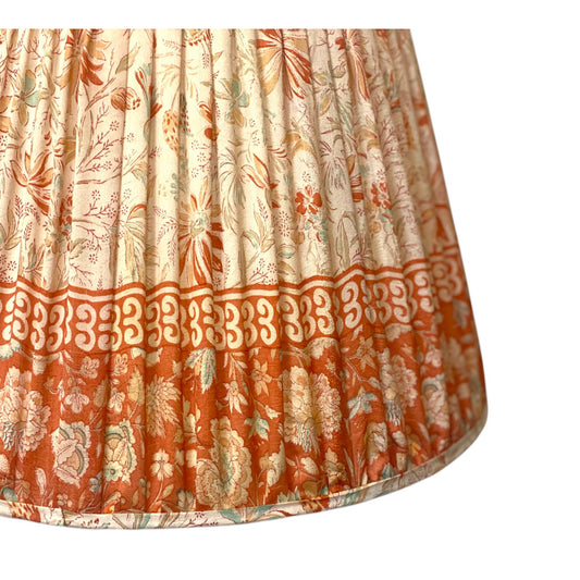 Coral with border vintage silk sari lampshade