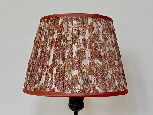Pink and coral paisley silk sari lampshade