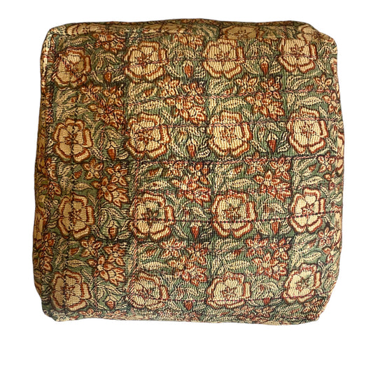 Green Floral Kantha Floor Cushion | 60x60x30cm