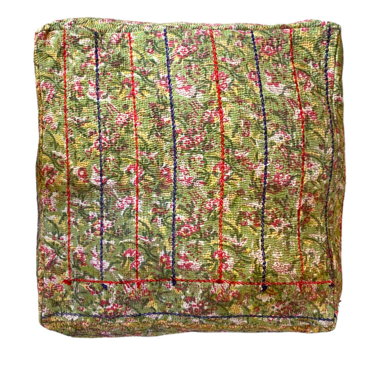 Green Floral Kantha Floor Cushion | 60x60x30cm