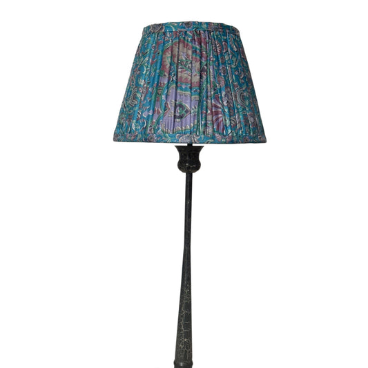 Handmade Floral Aqua Vintage Silk Sari Gathered Lampshade (25cm)