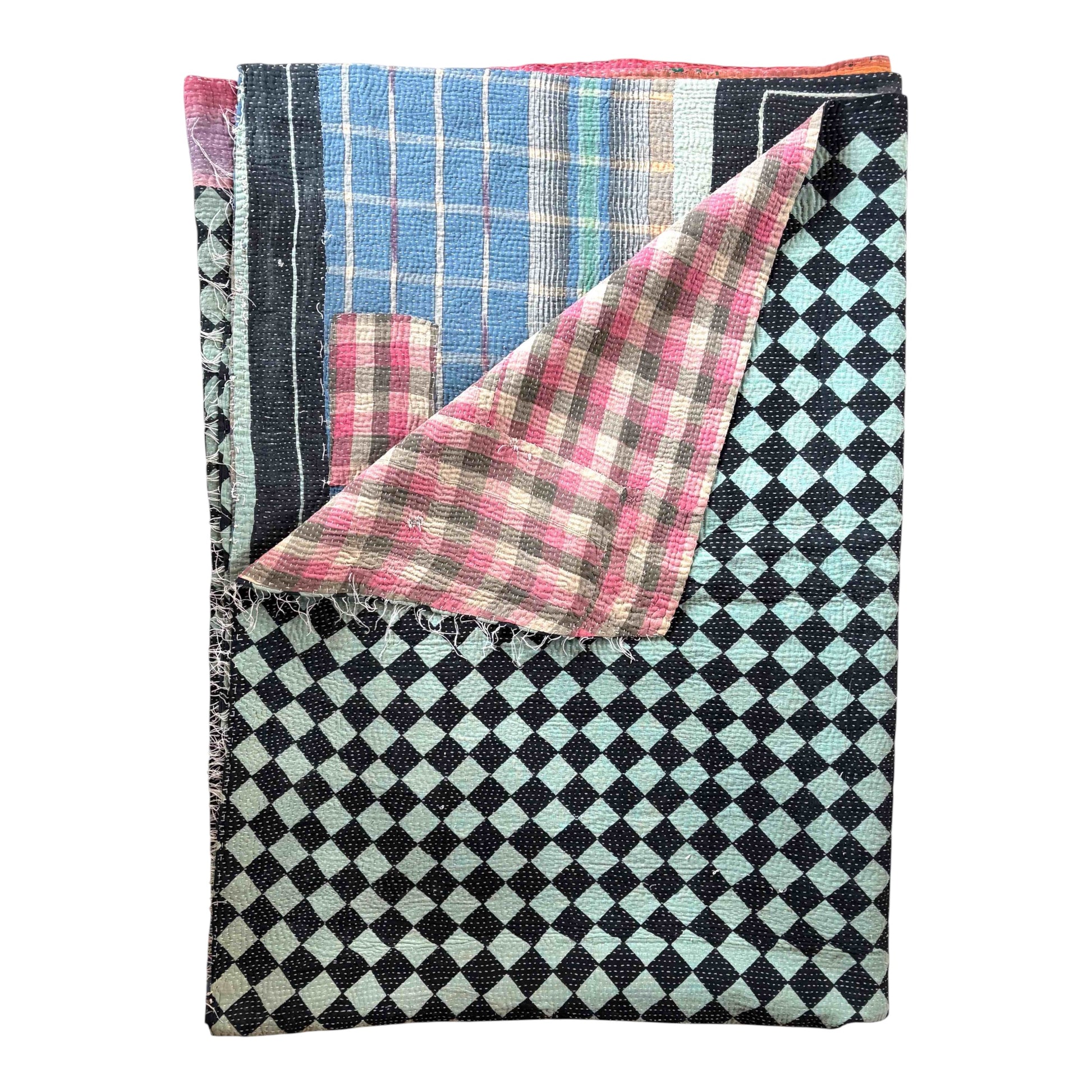 Blue Chequerboard Kantha quilt